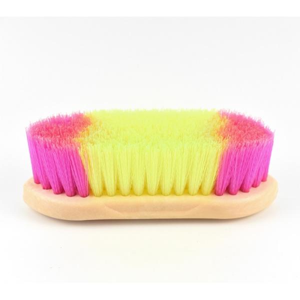 This plastic horse brush is ideal for removing dust, mud, and dirt from the horse. Long colorful bristle allows you to flick any dirt and sweat away from the horse's coat without removing coat oils.